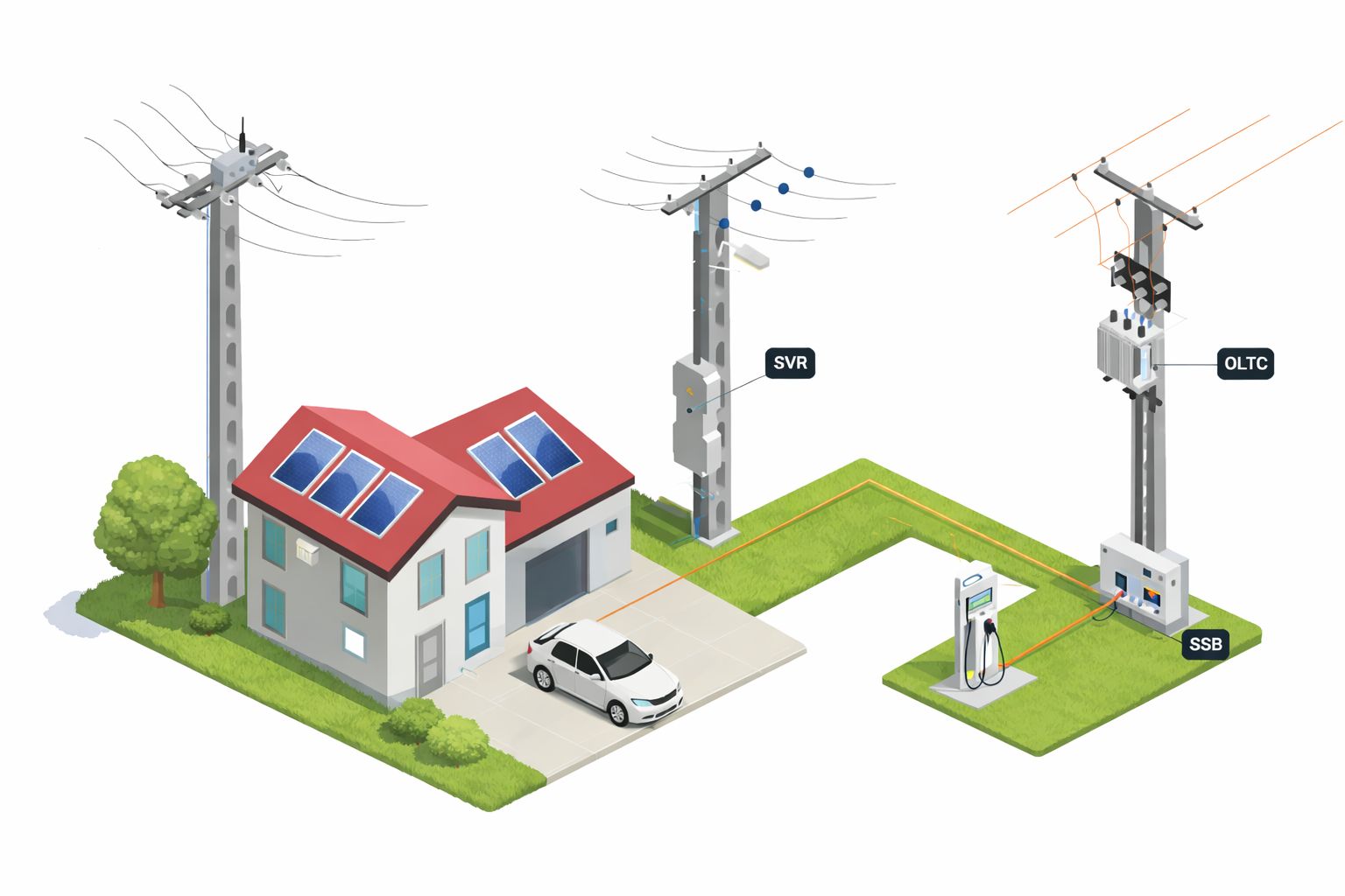 Megoldásainkkal az áramszolgáltatók és hálózatüzemeltetők dinamikusan és automatizáltan képesek vezérelni az alacsonyfeszültségű hálózatokat. Rendszerünk okos OLTC transzformátorokra, intelligens feszültségszabályozókra és okos kapcsolótáblákra épül, amelyek együtt biztosítják a stabil feszültségszinteket és a folyamatos energiaellátást.